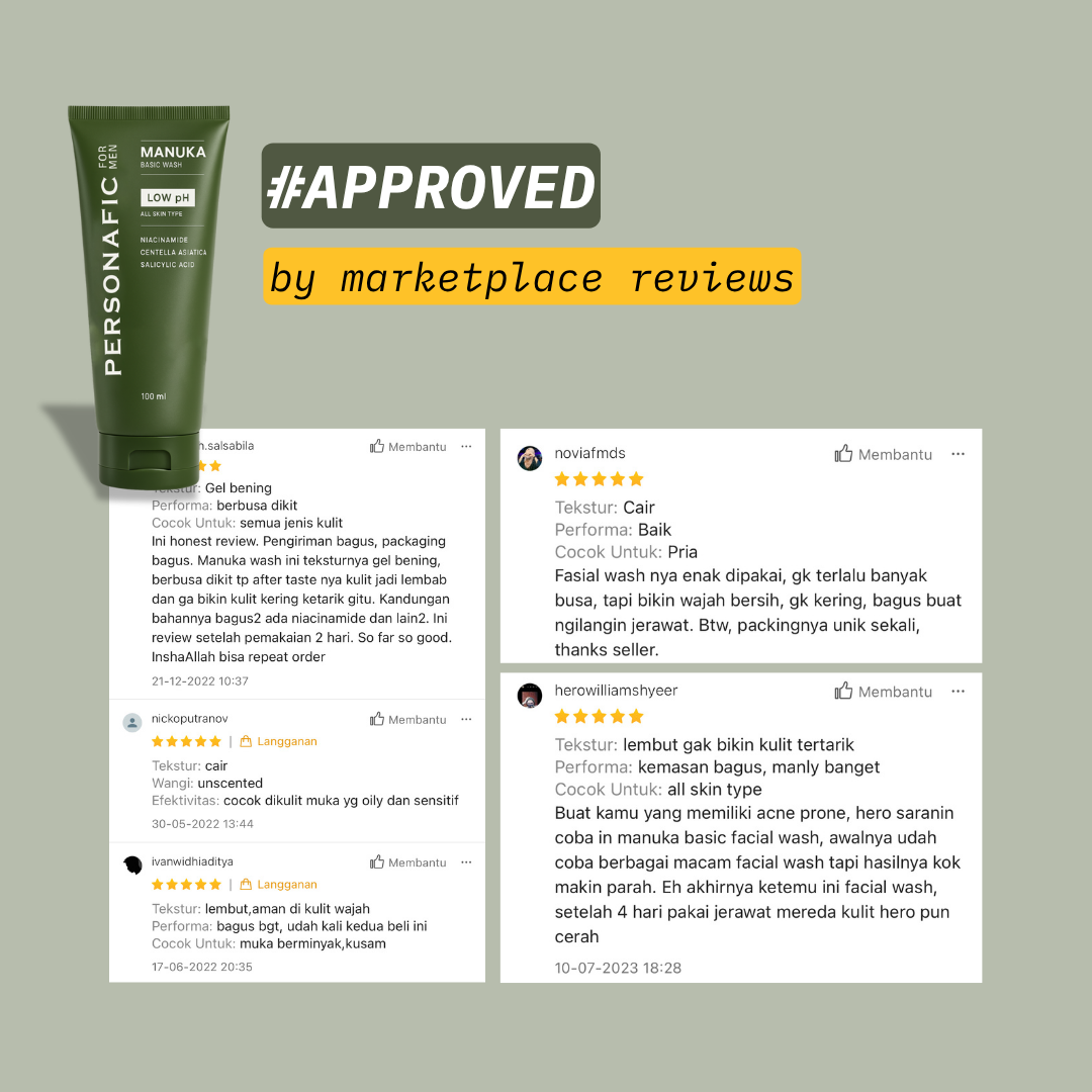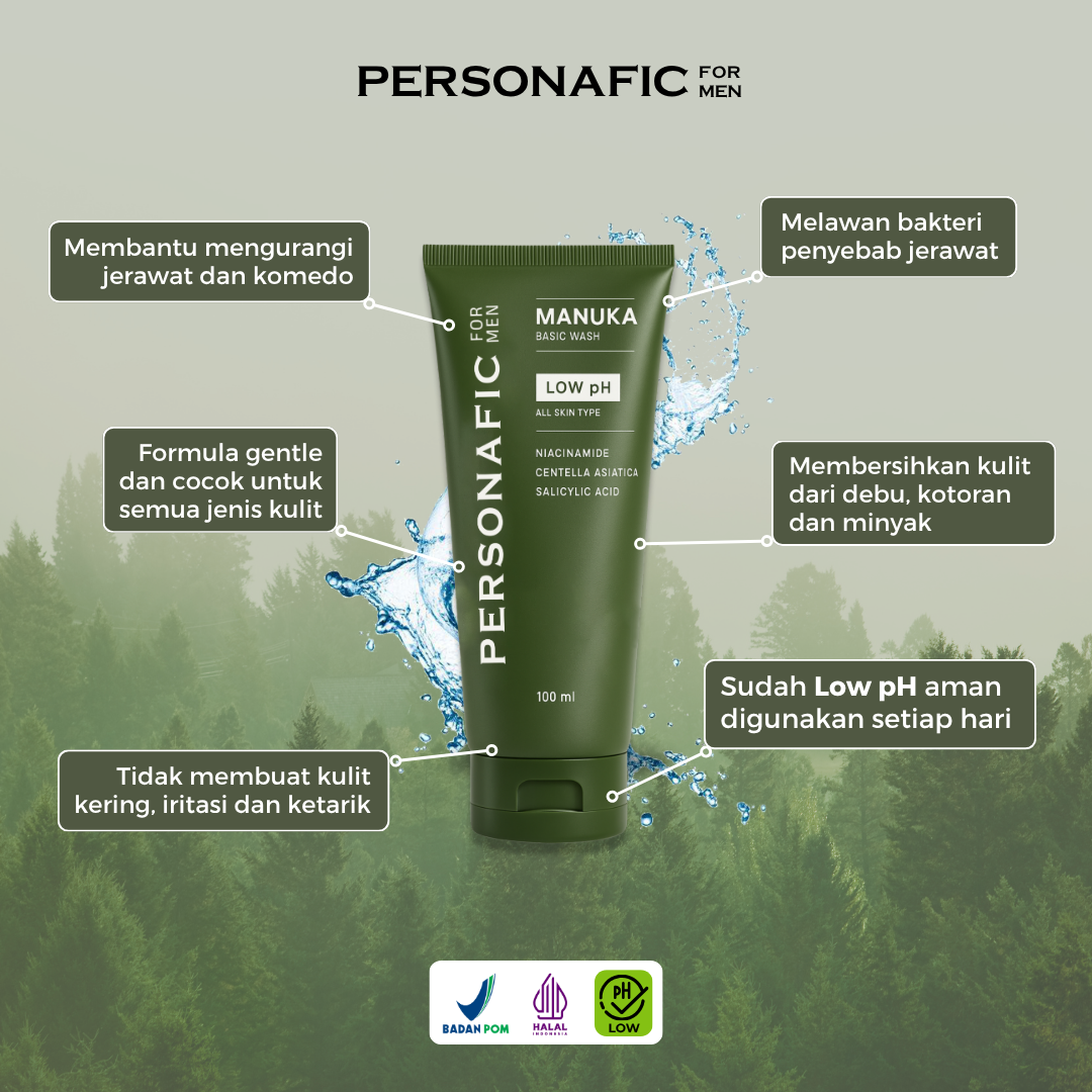 Facial wash yang dirancang secara khusus dengan Low pH sehingga lebih seimbang dengan pH kulit wajah. Manuka Basic Wash ini mengandung Niacinamide, Sodium PCA, Salicylic Acid, Manuka Leaf Extract, Centella Asiatica dan Sea Buckthorn